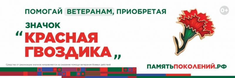С 10 апреля по 22 июня благотворительный фонд «Память поколений» в одиннадцатый раз проведет акцию «Красная гвоздика». Приобретая за пожертвование значок красной гвоздики, жители России смогут поддержать ветеранов Великой Отечественной войны и других боевых действий.