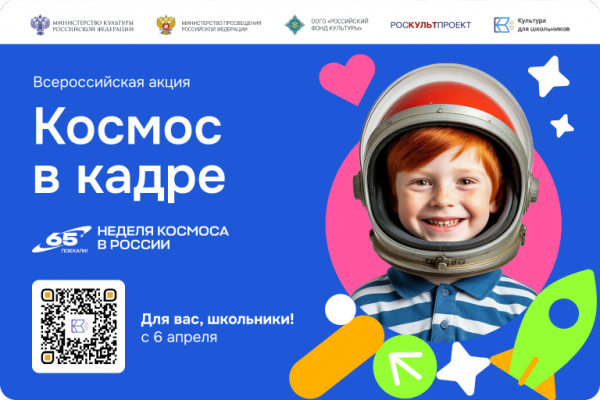 6 апреля 2026 года стартует Всероссийская творческая акция для школьников 1 -11 классов «Космос в кадре». Школьникам со всей России предлагается создать видео- и анимационные работы по следующим тематическим номинациям: